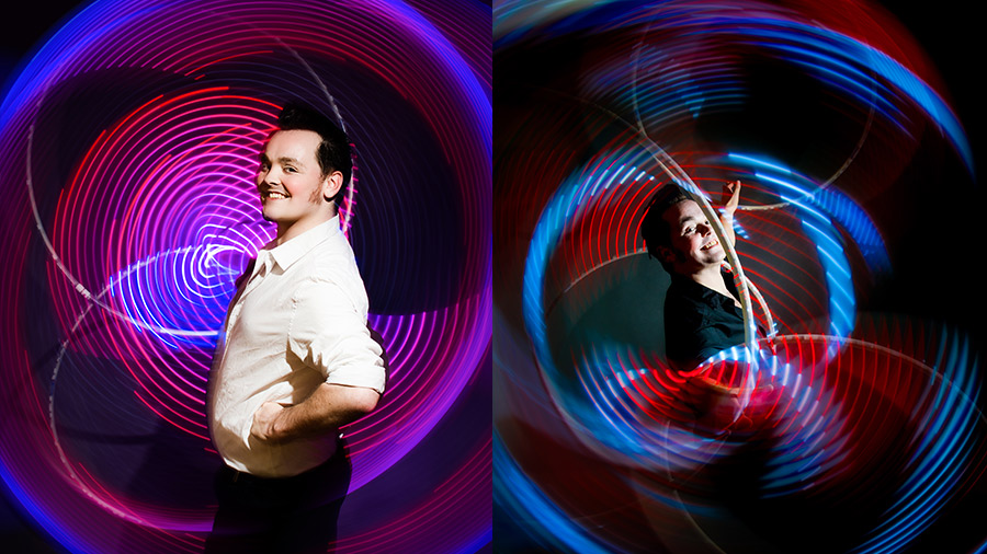 Craig performs with world class LED Hula-hoop equipment.